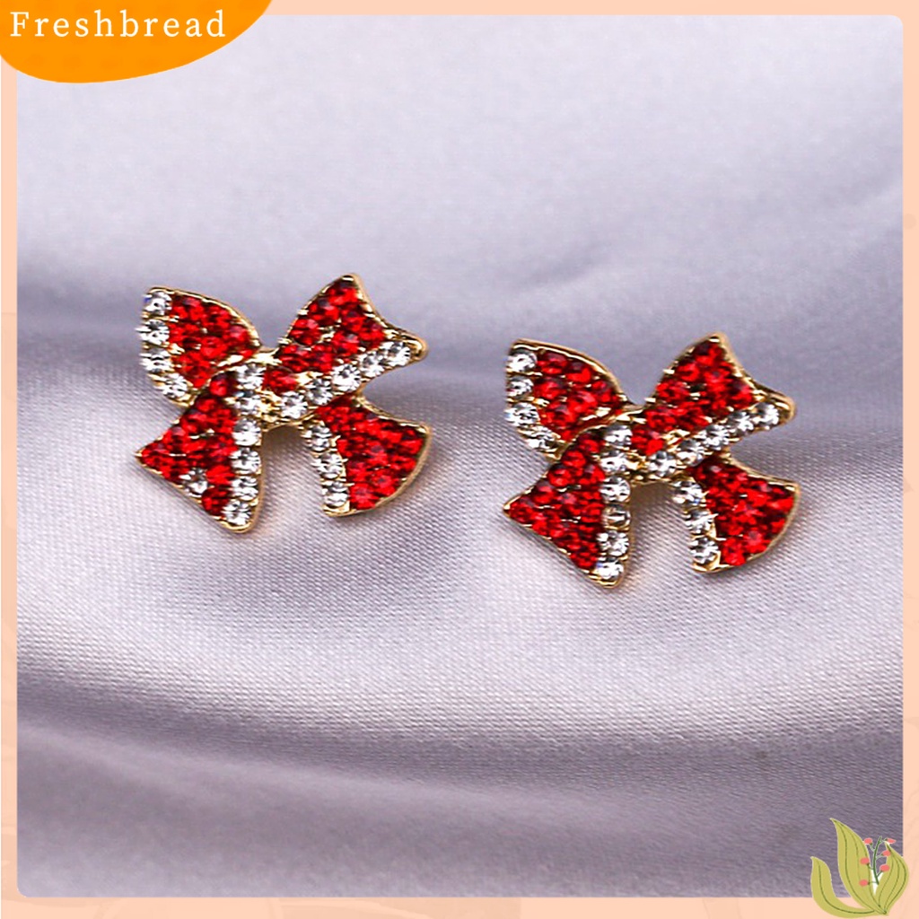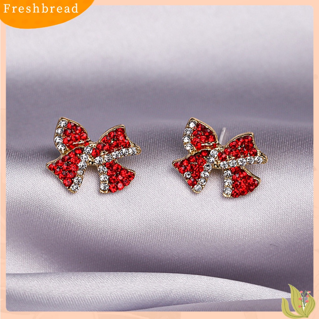 Detail < Freshbread > 1pasang Anting Tusuk Bentuk Busur Berlian Imitasi Perhiasan Manis Tahan Lama Ear Studs Untuk Pakaian Sehari-Hari