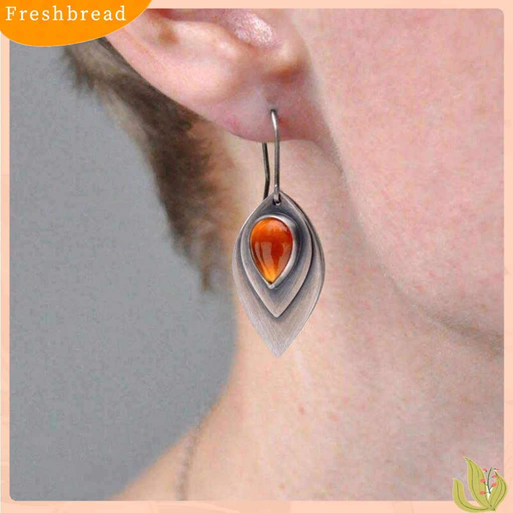 Aksesoris Fashion > Anting > < Freshbread > 1pasang Anting Wanita Bentuk Daun Vintage Retro Ukiran Warna Kontras Hias Telinga Anti Alergi Batu Hias Menjuntai Anting Hadiah