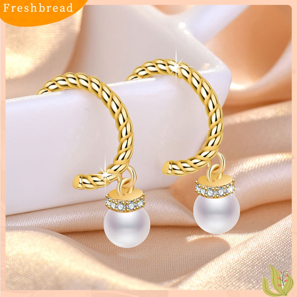 Aksesoris Fashion > Anting > < Freshbread > 1pasang Anting Wanita Bersinar C-shaped Pendant Berlian Imitasi Hias Electroplating Ear Decoration Aksesori Fashion Faux Pearl Menjuntai Earrings Untuk Kehidupan Sehari-Hari