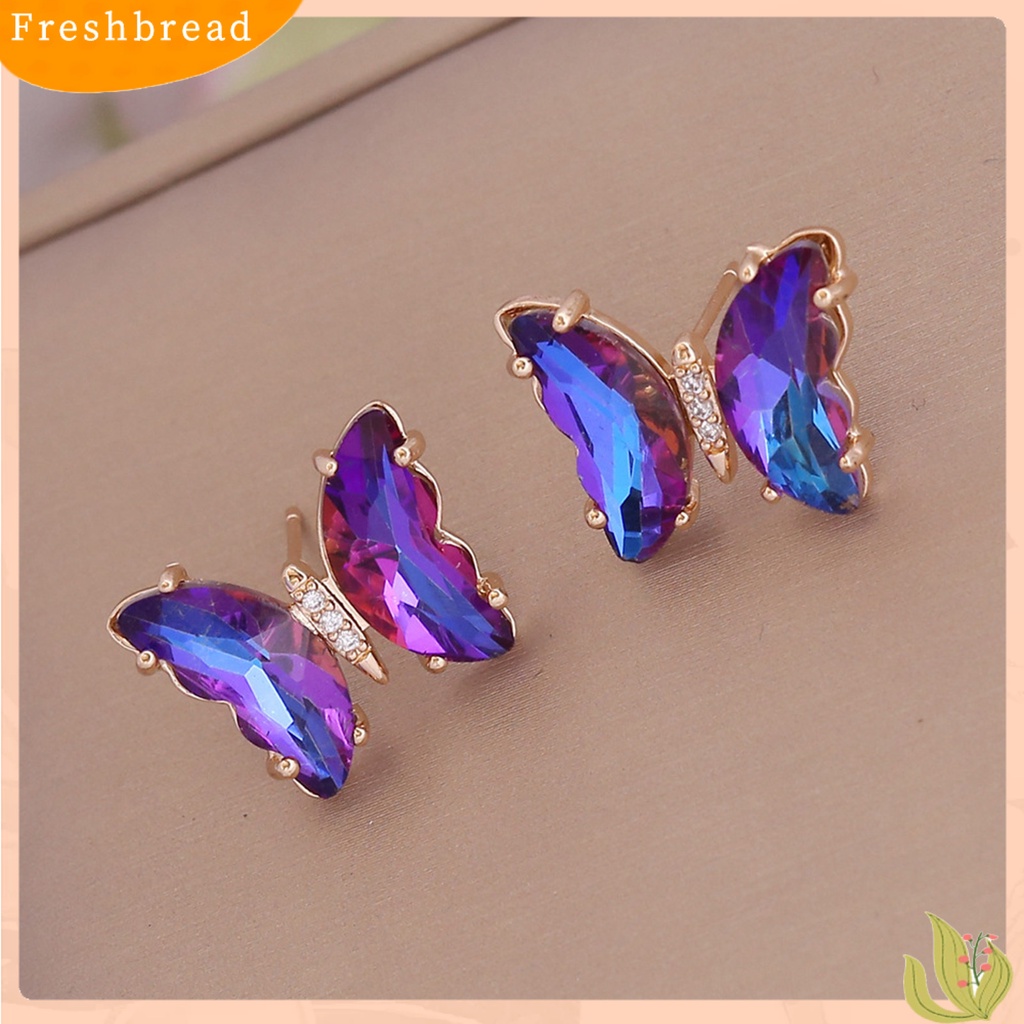 Detail < Freshbread > 1pasang Anting Tusuk Warna Gradasi Bentuk Kupu-Kupu Perhiasan Giwang Telinga Manis Tahan Lama Untuk Pakaian Sehari-Hari