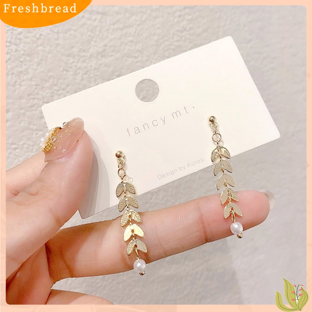 Detail < Freshbread > 1pasang Anting Pejantan Bersinar Mutiara Imitasi Rumbai Desain Geometris Bentuk Reguler Dekorasi Colorfast Lady Elegan Anting Panjang Aksesoris Pakaian