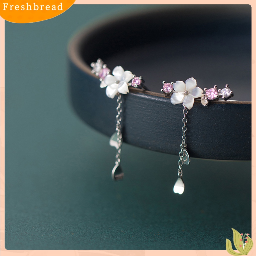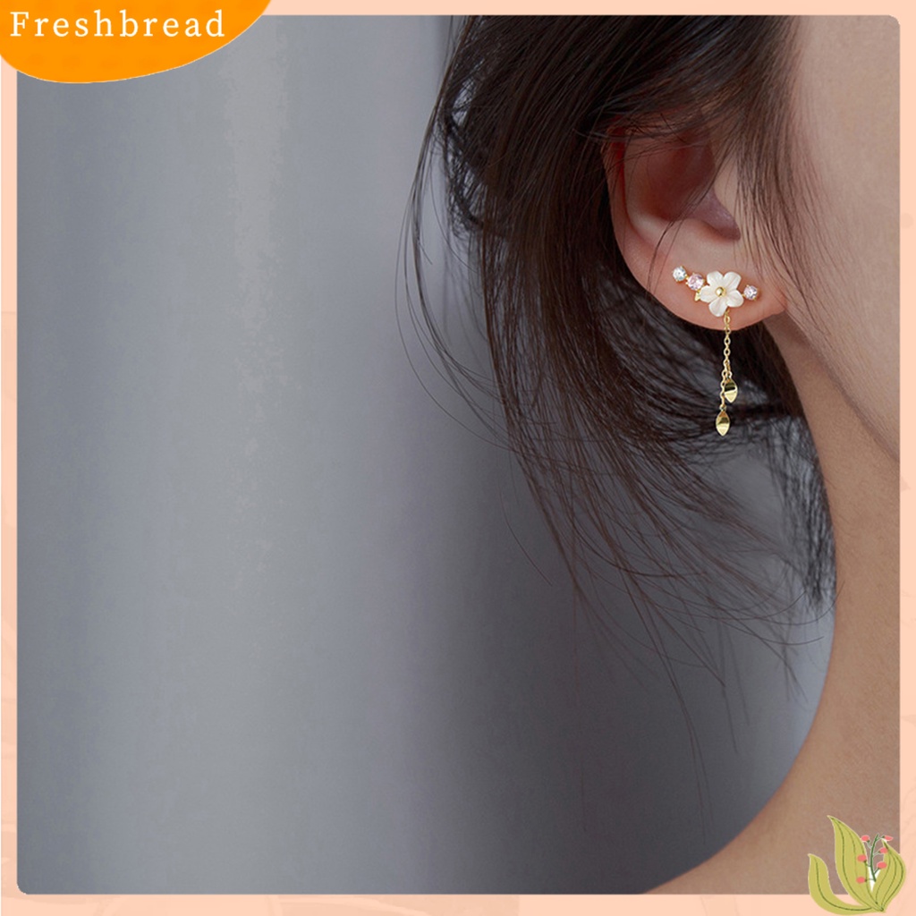 < Freshbread > 1pasang Anting Pejantan Shell Bunga Rantai Liontin Berlian Imitasi Elegan Bertatahkan Menjuntai Anting-Anting Perhiasan Fashion
