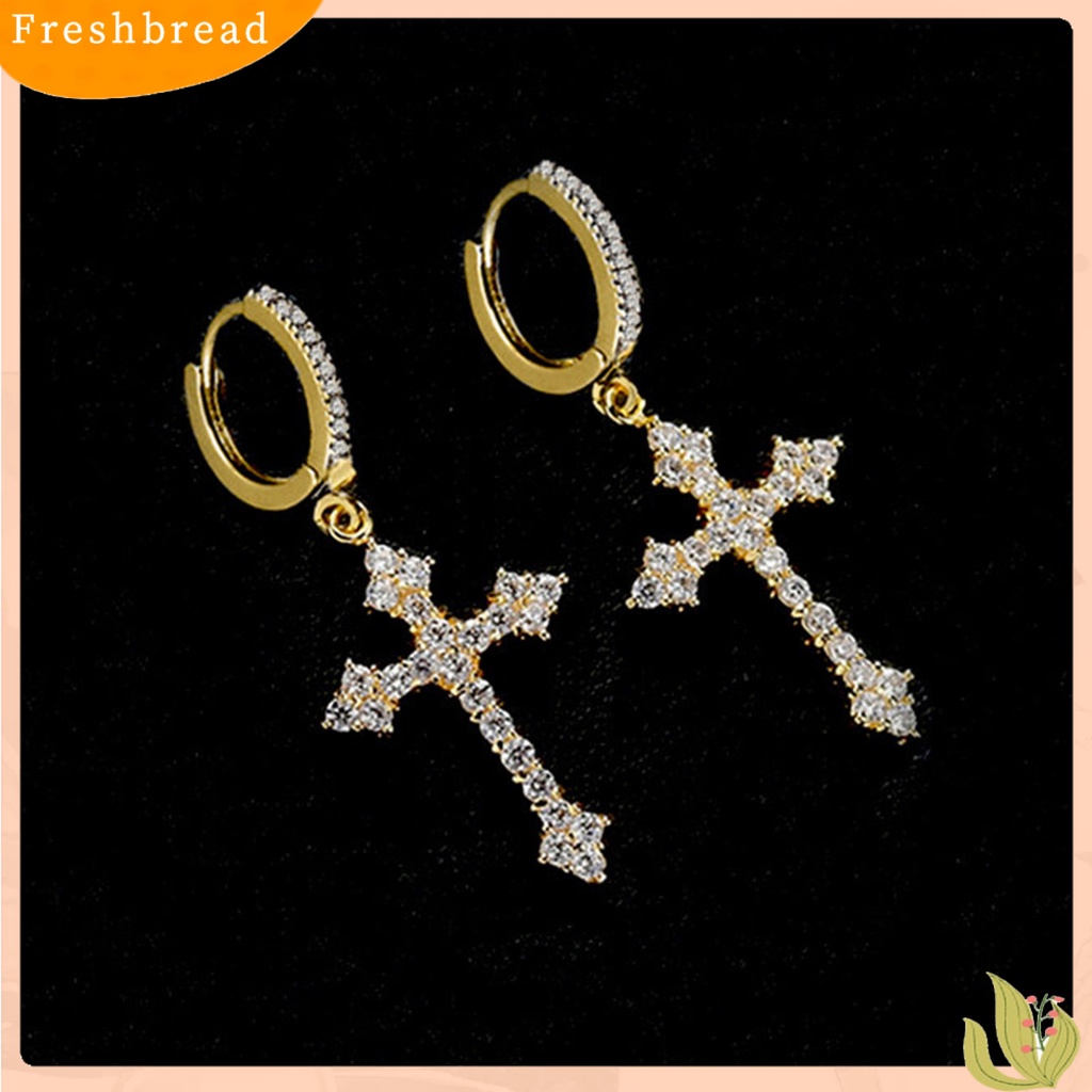 Detail < Freshbread > 1pasang Anting Menjuntai Cross Hip Hop Perhiasan Berkilau Terang Kilau Anting Hoop Untuk Pakaian Sehari-Hari