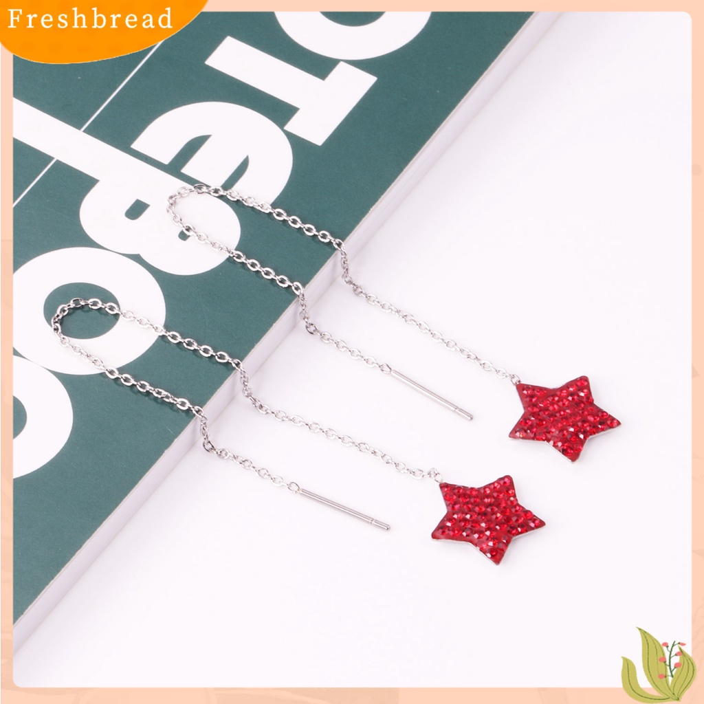 < Freshbread > 1pasang Anting Pejantan Rumbai Lurus Gantung Eropa Dan Amerika Berlebihan Geometris Telinga Dekorasi High-end Pentagram Bintang Kembali Gantung Drop Earrings Perhiasan Fashion