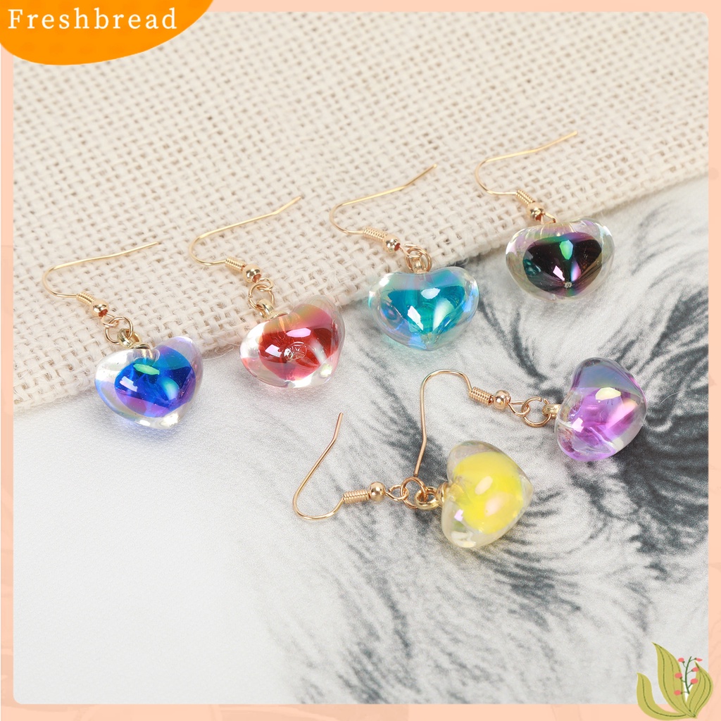 Detail < Freshbread > 1pasang Anting Wanita Indah Pengerjaan Halus Eye-catching Electroplating Nyaman Dipakai Berdandan Tahan Luntur Wanita Akrilik Jantung Kait Drop Earrings