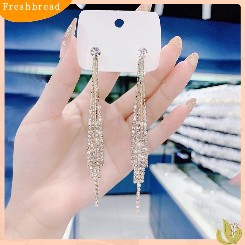 < Freshbread > 1pasang Anting Stud Dainty Elegan Temperamen Mewah Berlian Imitasi Bertatahkan Jumbai Linear Earrings Perhiasan Fashion