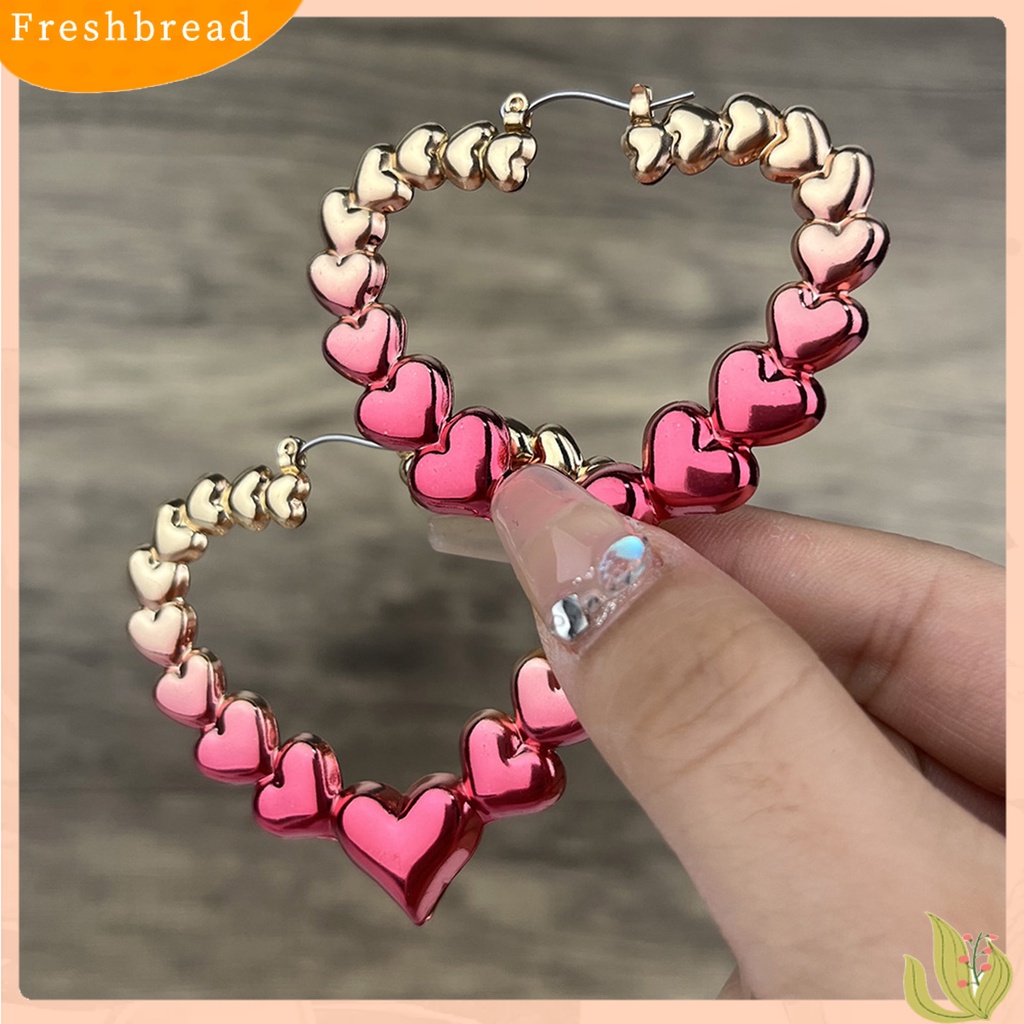 Detail < Freshbread > 1pasang Anting Stud Kepribadian Berlebihan Anting Hoop Bulat Berbentuk Hati Cinta Tiga Dimensi Untuk Pacaran
