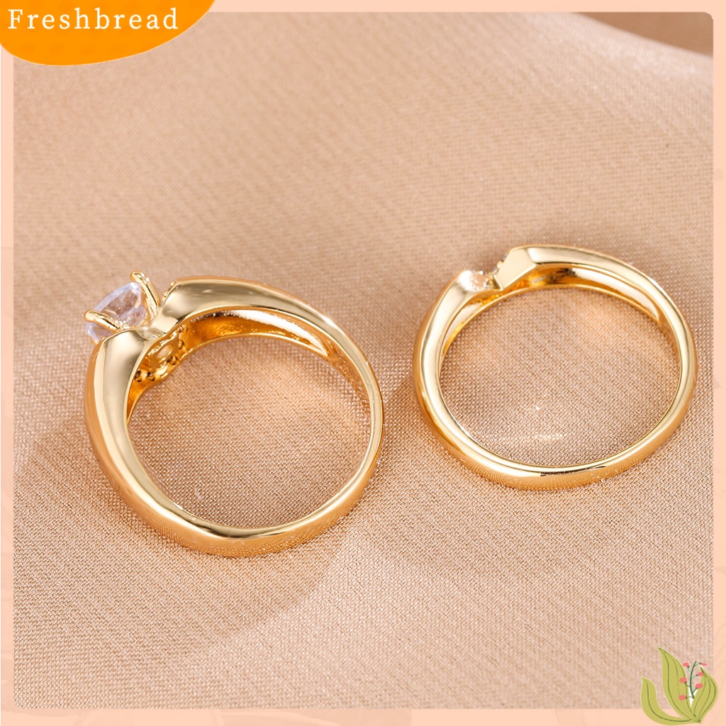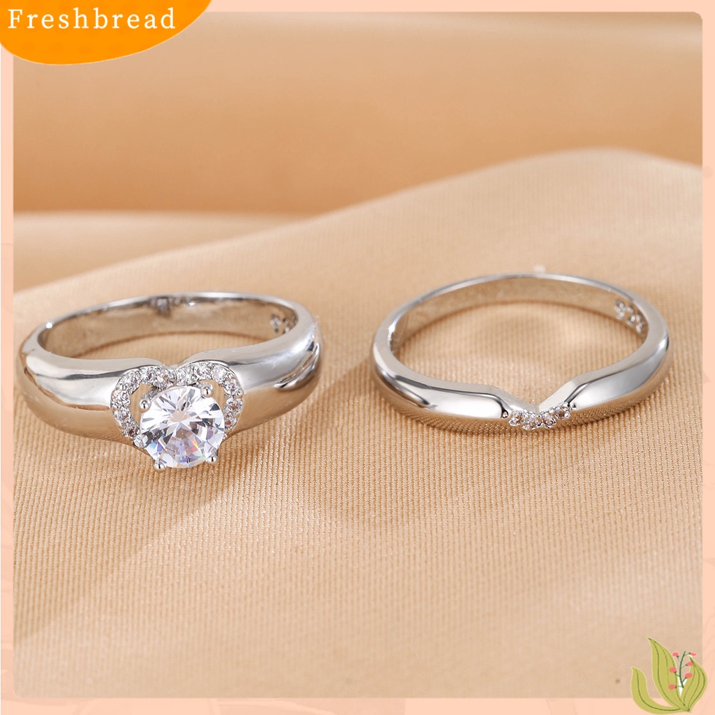 Detail < Freshbread > 1pasang Cincin Tunangan Dainty Hadiah Hari Valentine Berlian Imitasi Berkilau Cinta Hati Wanita Pria Jari Cincin Perhiasan Fashion
