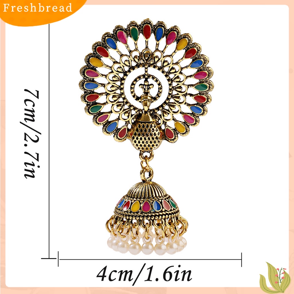Detail < Freshbread > 2Pcs Anting Menjuntai Gaya India Bell Rumbai Mutiara Imitasi Warna-Warni Geometris Hias Hadiah Wanita Merak Liontin Anting Perhiasan Fashion Untuk Pakaian Sehari-Hari