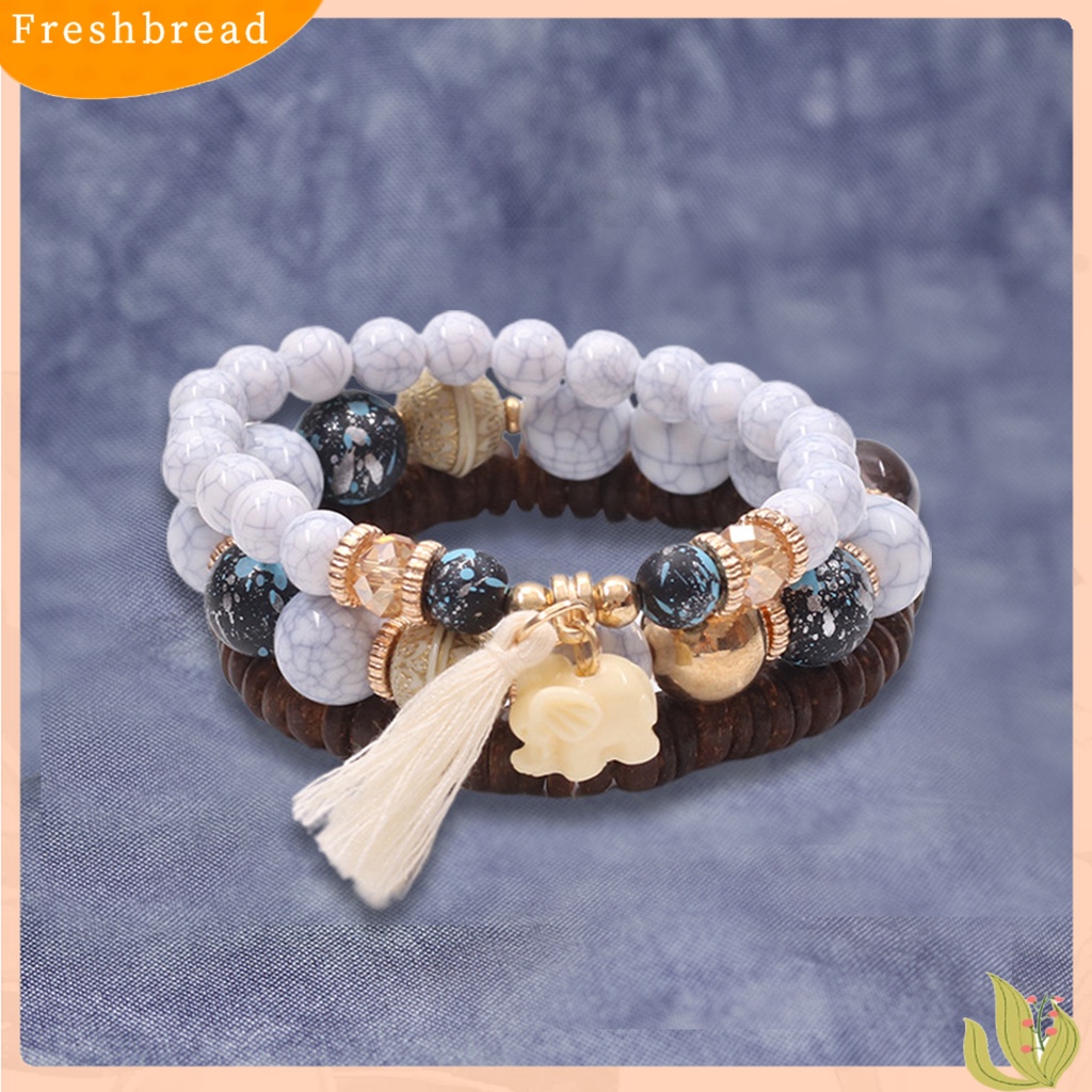 Detail < Freshbread > 3Pcs Manik-Manik Kayu Rumbai Kombinasi Resin Gelang Hadiah Perhiasan Aksesoris
