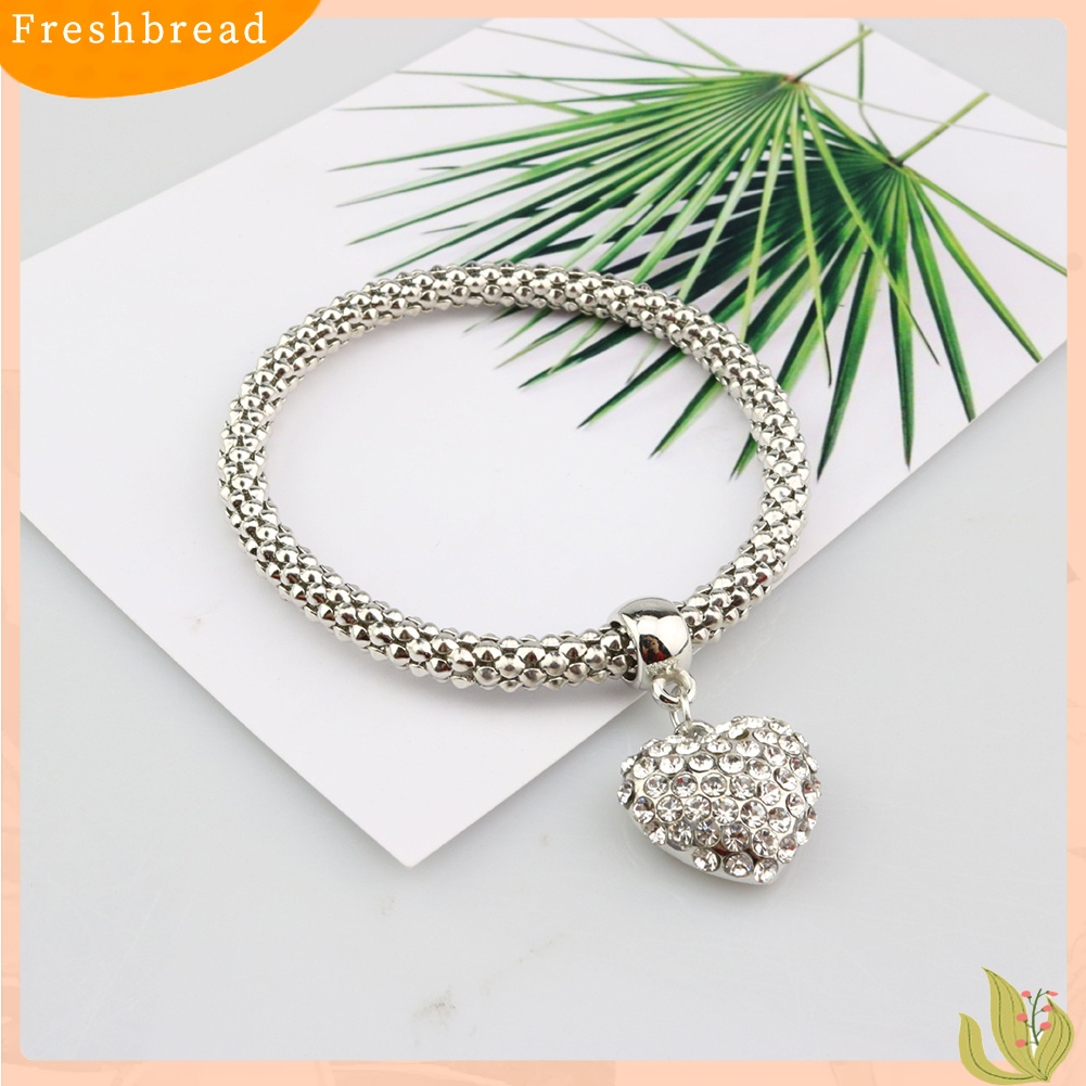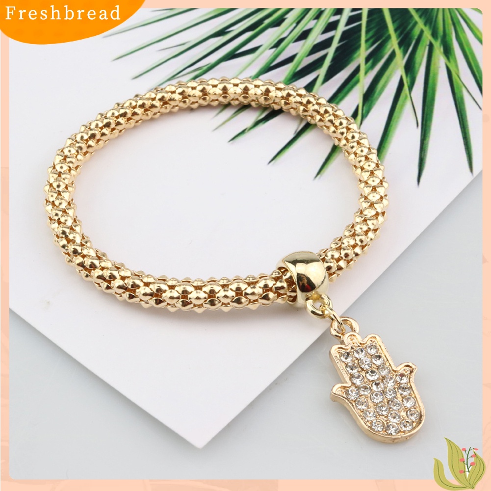 Detail < Freshbread > 3Pcs/Set Berlian Imitasi Jantung Tangan Fatima Pesona Rantai Jagung Lady Gelang Bangle