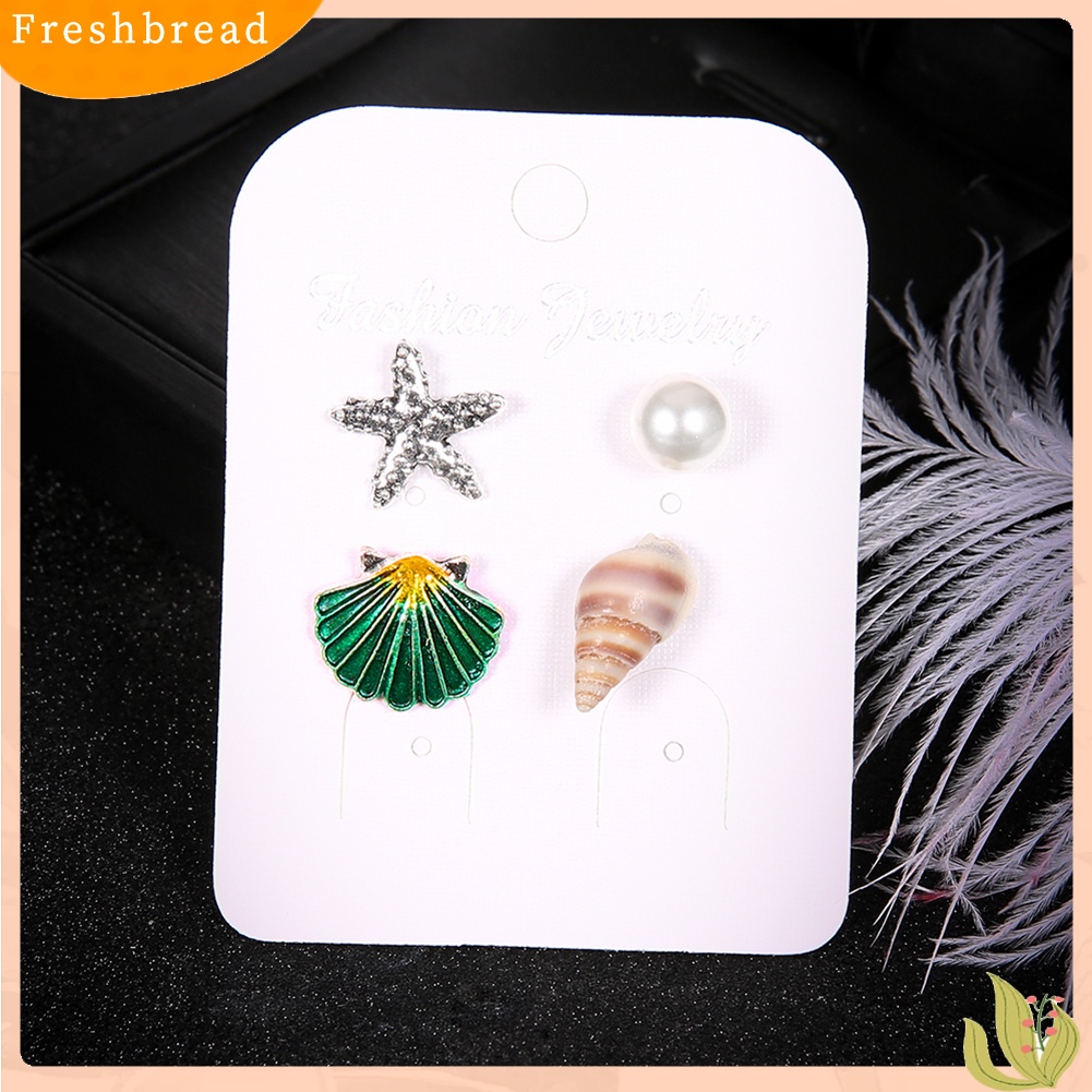 Detail < Freshbread > 4Pcs/Set Musim Panas Pantai Bintang Laut Kerang Mutiara Imitasi Wanita Stud Earrings Hadiah