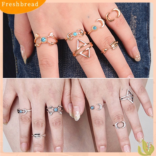 Detail < Freshbread > 6Pcs Turquoise Arrow Moon Triangle Above Knuckle Ring Cincin Tumpuk Ujung Jari Tengah