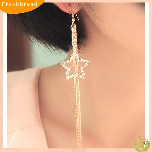 Detail < Freshbread > Berlian Imitasi Wanita Pentacle Star Drop Jumbai Panjang Rantai Kait Menjuntai Anting Linear