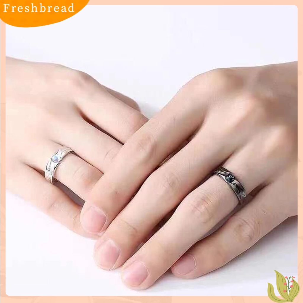Aksesoris Fashion > Cincin > < Freshbread > Cincin Couple Vintage Glazed Black White Faux Moonstone Desain Pembukaan Yang Dapat Disesuaikan Hadiah Hias Tren Siswa Terbuka Cincin Perhiasan Pakaian Sehari-Hari