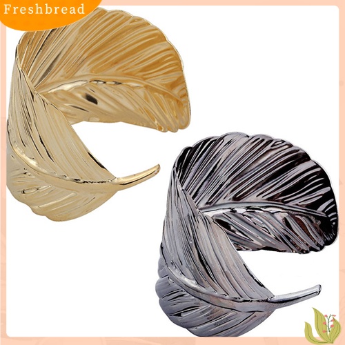 Detail < Freshbread > Fashion Wanita Bangle Lebar Manset Dibuka Logam Bentuk Daun Gelang Perhiasan