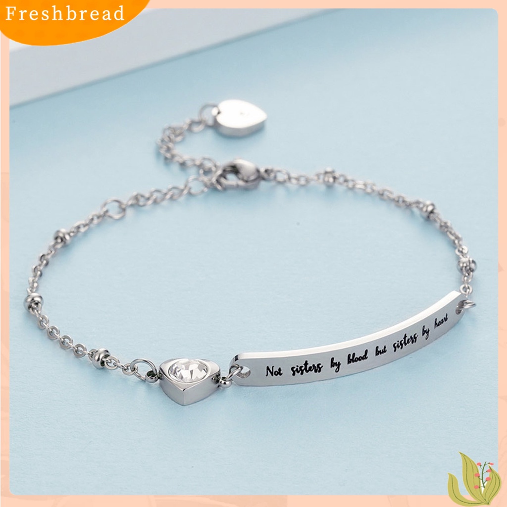 < Freshbread > Huruf Cetak Adjustable Wanita Gelang Baja Titanium Plat Melengkung Berbentuk Hati Menjuntai Gelang Aksesori Perhiasan