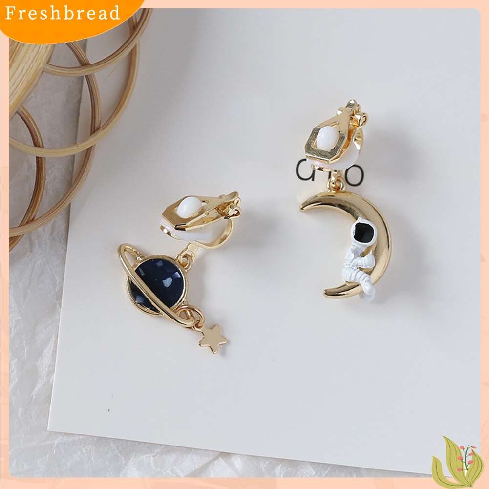 Detail < Freshbread > Kreatif Asimetris Astronot Planet Bulan Liontin Wanita Stud Earrings Perhiasan