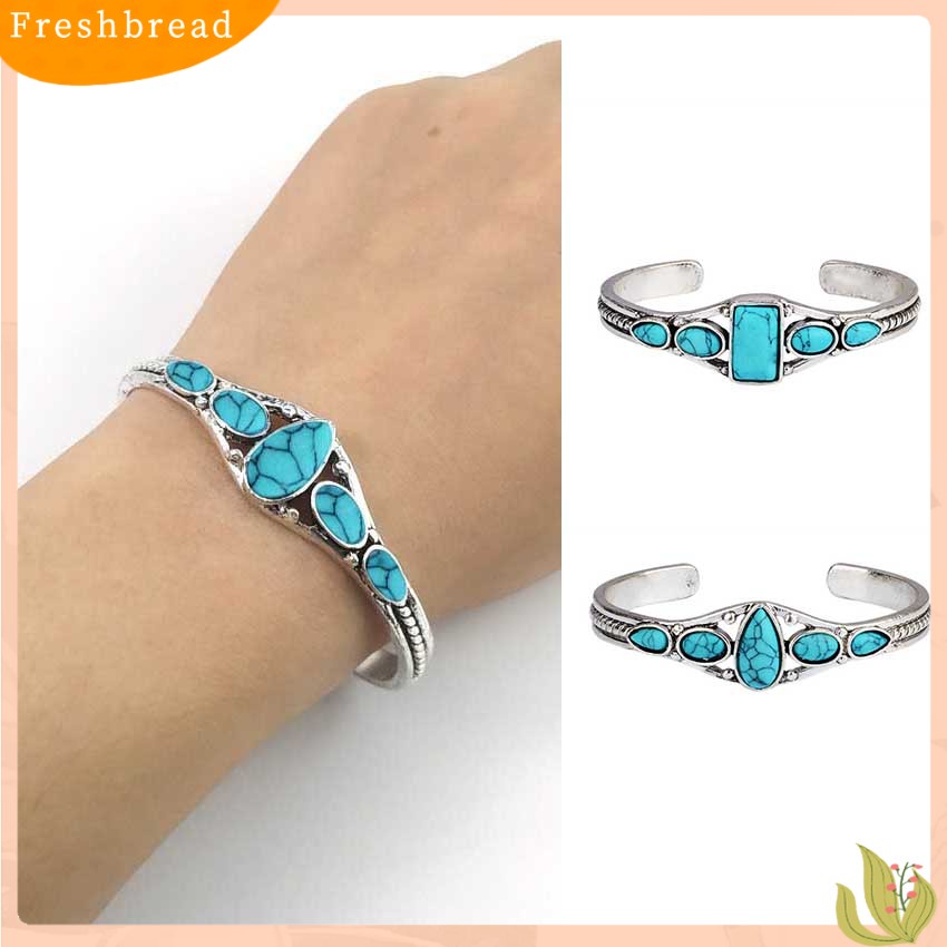 < Freshbread > Pembukaan Ukir Berongga Keluar Manset Gelang Vintage Turquoises Wanita Bangle Aksesoris Fashion