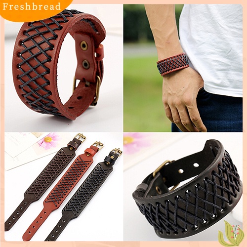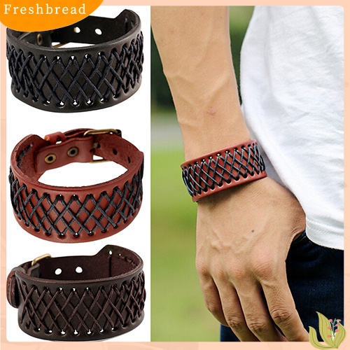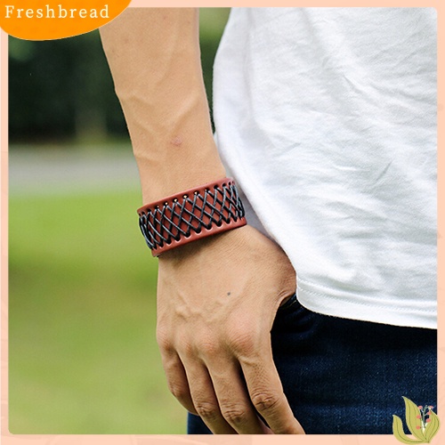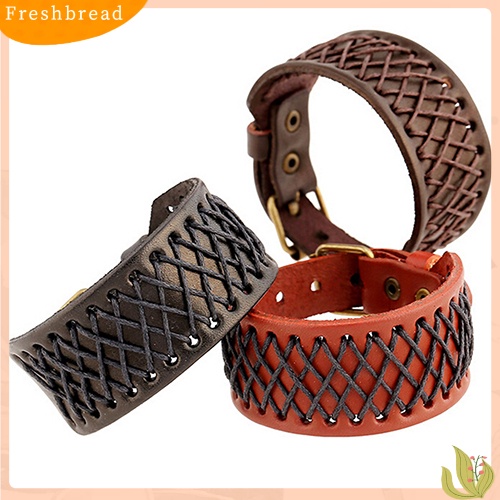 Detail < Freshbread > Pria Wanita Gaya Punk Kepang Lebar Kulit Bangle Retro Gelang Cuff Bracelet
