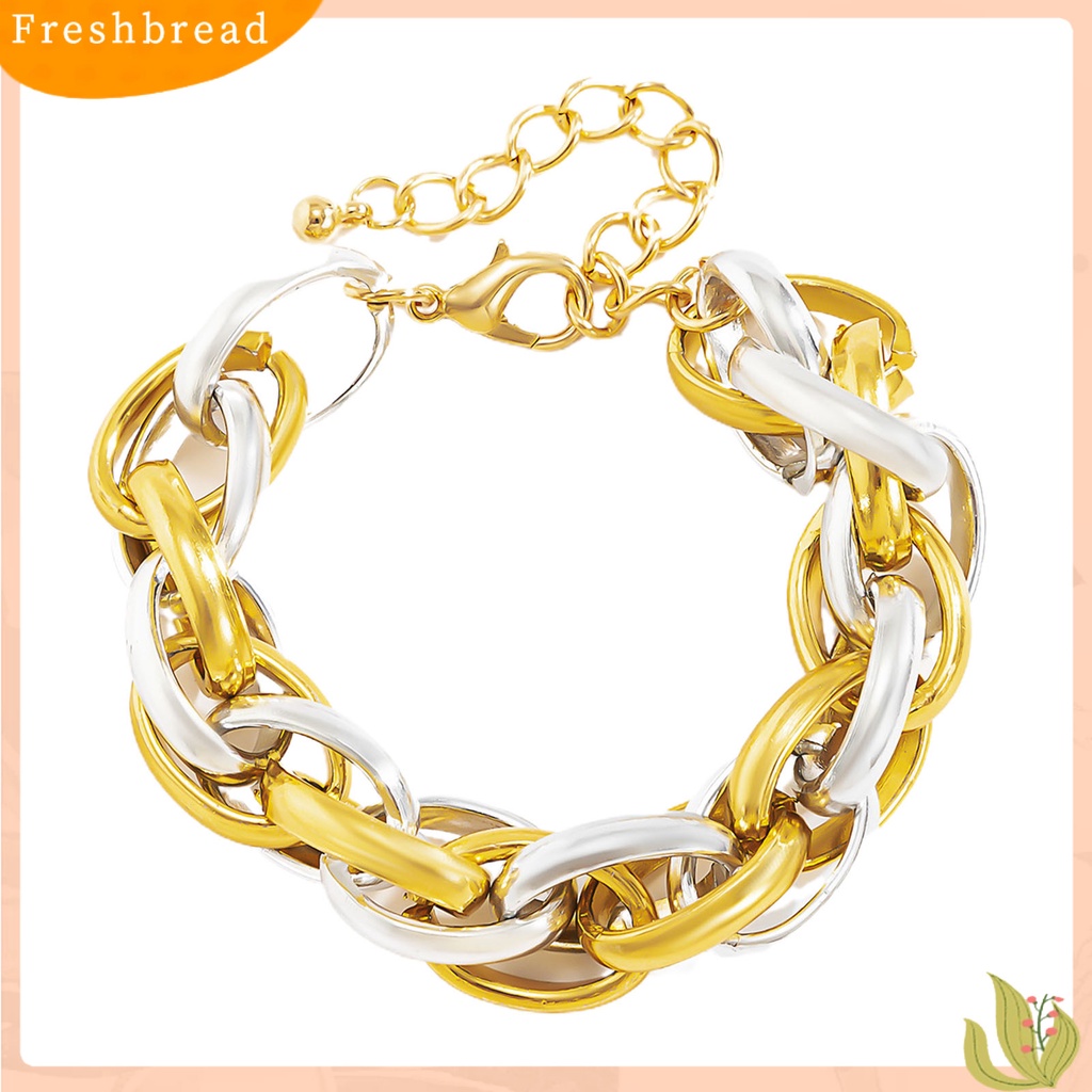 Aksesoris Fashion > Gelang Tangan & Bangle > < Freshbread > Rantai Tangan Wanita Link Desain Rantai Tangan Aluminium Lapis Mono Retro Mengkilap Untuk Pesta