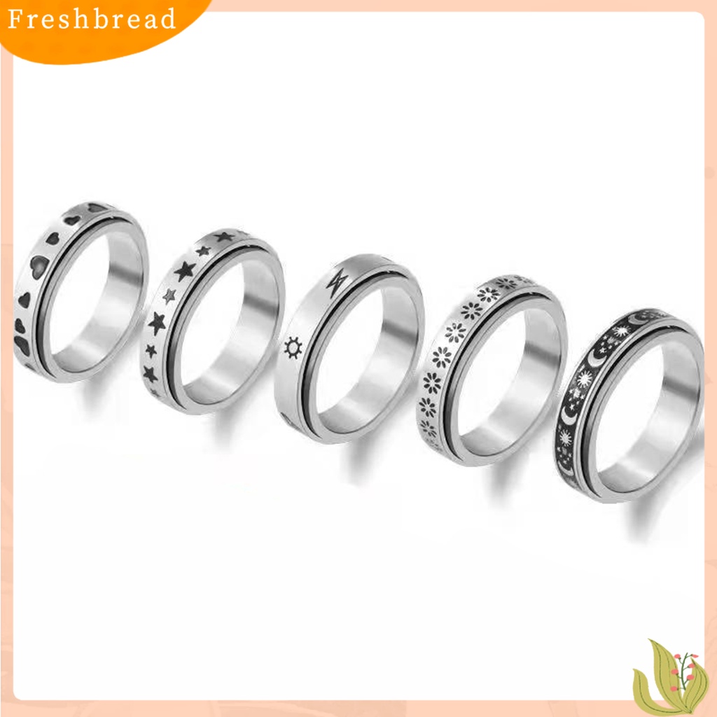 Detail < Freshbread > Spinner Rings Tahan Lama Unisex Anti Karat Alloy Bulan Bintang Fidget Ring Cincin Stress Penghilang Kecemasan Untuk Pesta