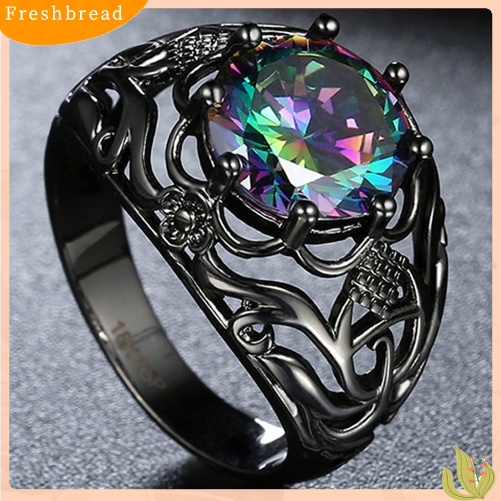Detail < Freshbread > Unisex Cincin Berongga Keluar Permata Imitasi Pria Wanita Vintage Ukiran Jari Cincin Hadiah Hari Kasih Sayang