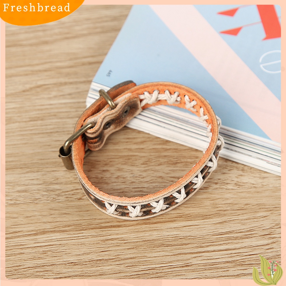 Detail < Freshbread > Unisex Rajut Tali Kulit Gesper Gelang Punk Antik Gelang Cuff Bangle