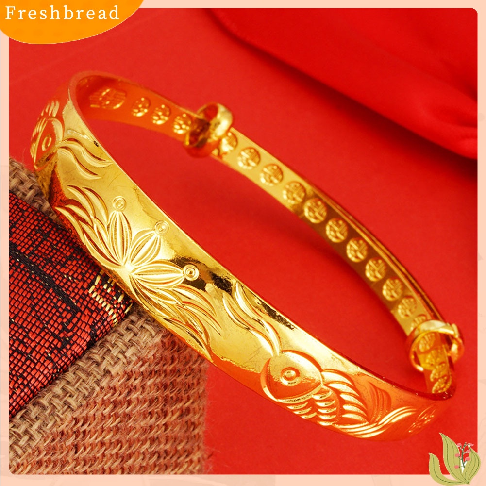 Detail < Freshbread > Vintage Wanita Ikan Mas Bunga Ukir Gelang Bangle Pesta Pernikahan Perhiasan Hadiah