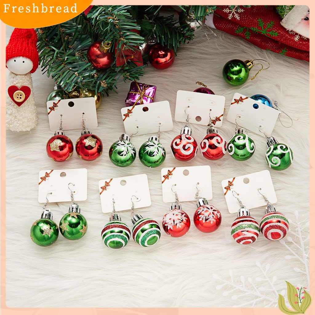 Detail < Freshbread > Wanita Anting Bulat Bola Liontin Kepingan Salju Pola Perhiasan Bohlam Natal Bintang Berujung Lima Menjuntai Anting-Anting Aksesoris