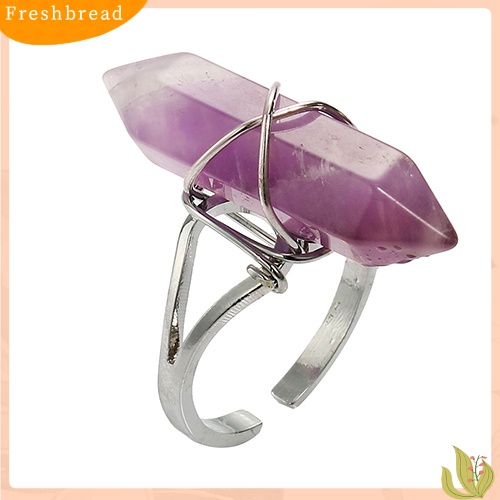 Detail < Freshbread > Wanita Cakra Penyembuhan Batu Kristal Sintetis Hexagonal Kawat Pembukaan Jari Cincin