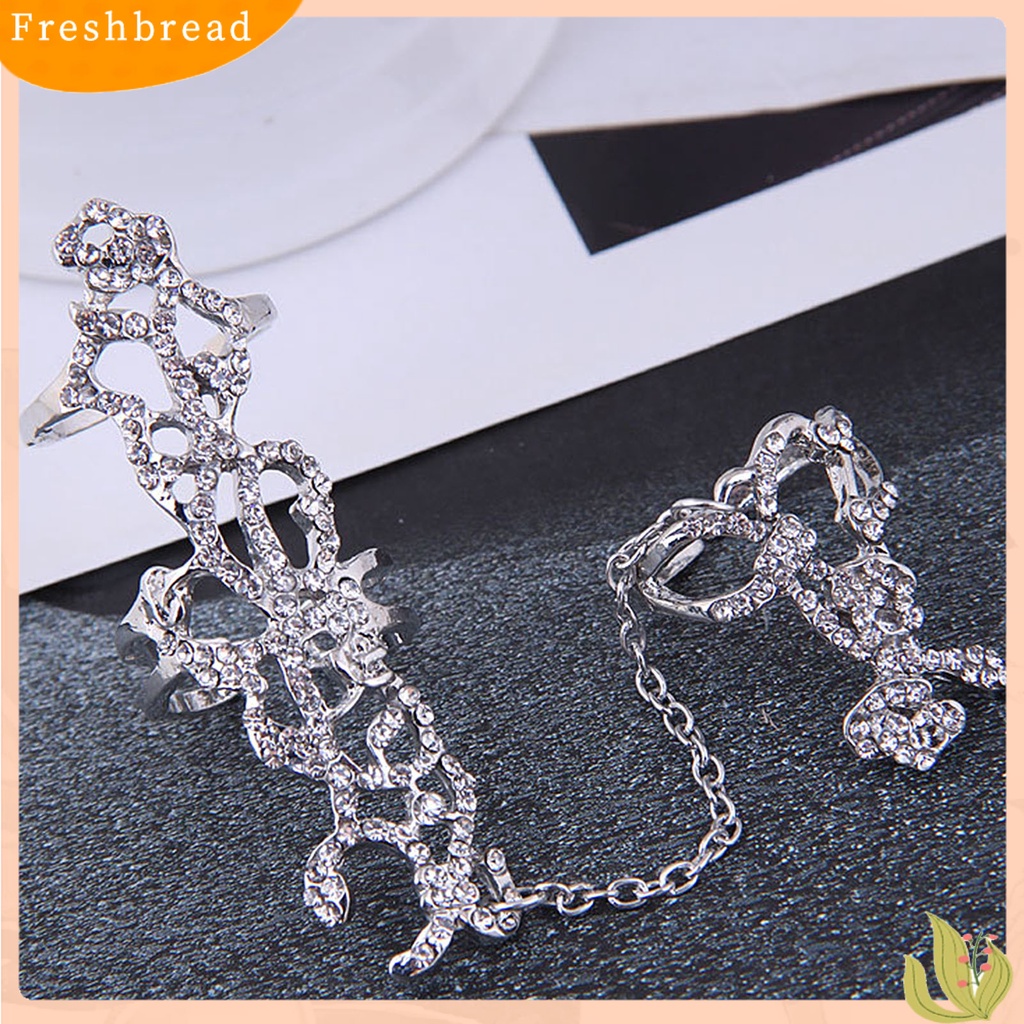 Detail < Freshbread > Wanita Cincin Ganda Full Finger Rose One-piece Punk Sparkling Knuckle Armor Ring Untuk Cosplay