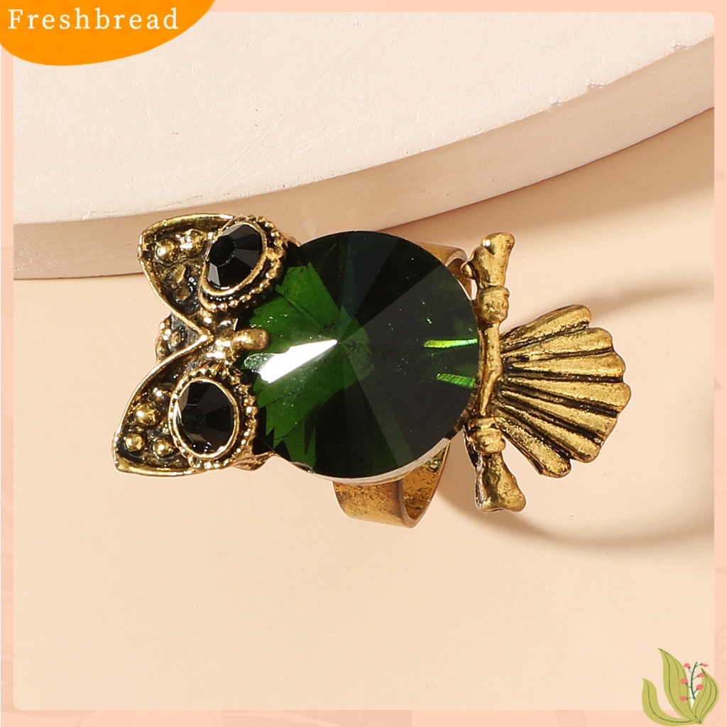 Detail < Freshbread > Wanita Cincin Hias Menggemaskan Hadiah Lucu Burung Hantu Hijau Berlian Imitasi Cincin Perhiasan Aksesoris
