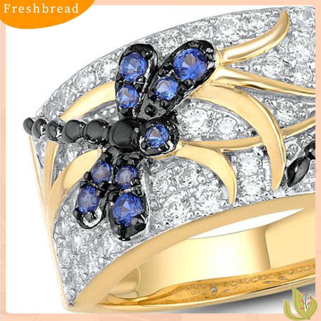 Detail < Freshbread > Wanita Cincin Capung Berlian Imitasi Perhiasan Berlapis Kilau Cerah Ring Untuk Pakaian Sehari-Hari