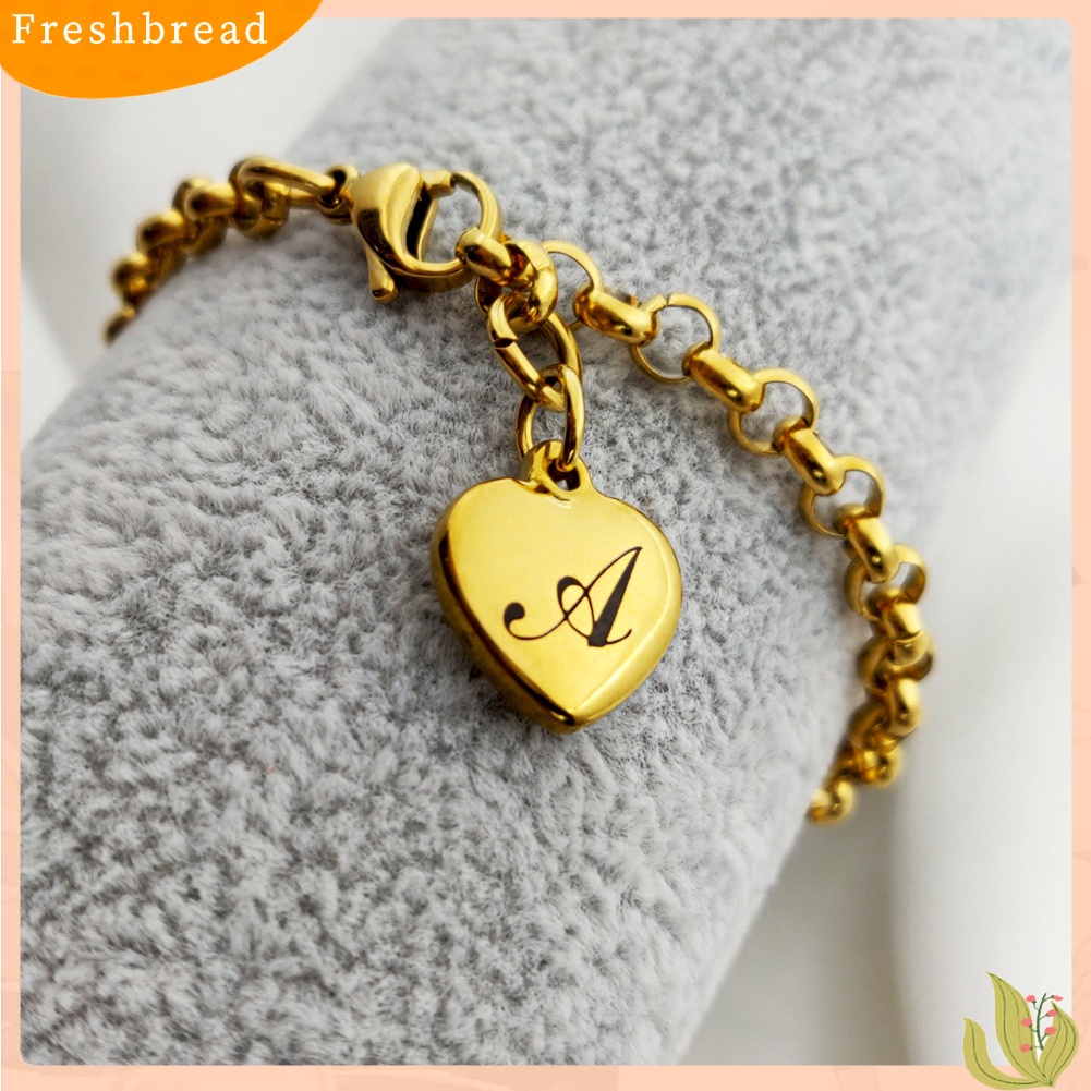 Detail < Freshbread > Wanita Cinta Hati Liontin Huruf A Ukiran Bangle Gelang Pesta Pergelangan Tangan Perhiasan