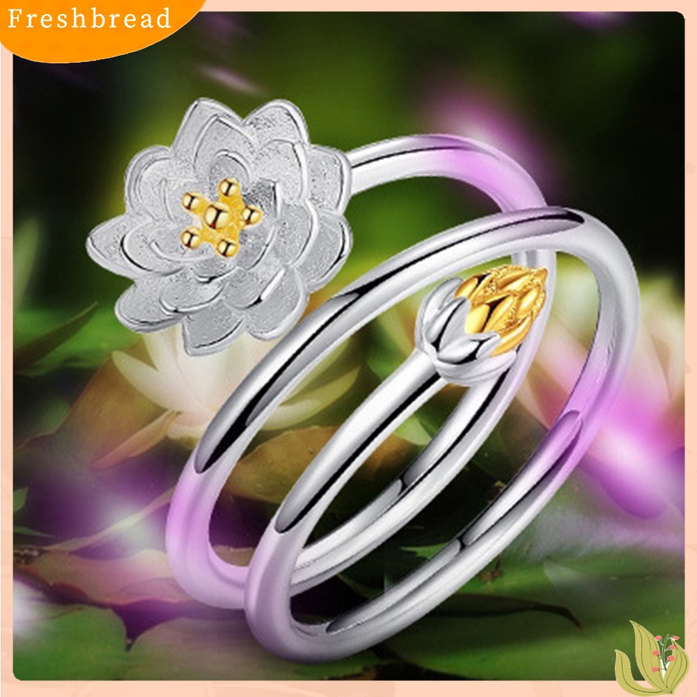 Detail < Freshbread > Wanita Elegan Lotus Blossom Menyesuaikan Jari Terbuka Cincin Pengantin Pernikahan Perhiasan Hadiah