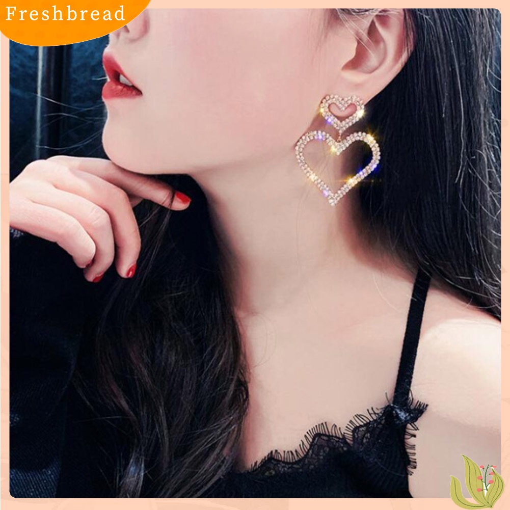 Detail < Freshbread > Wanita Elegan Berlian Imitasi Jantung Teardrop Menjuntai Ear Drop Earrings Perhiasan Pesta