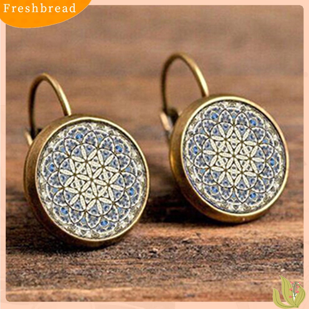 Detail < Freshbread > Wanita Etnik Bunga Matahari Bohemian Bulat Permata Imitasi Klip Leaverback Earrings Jewelry