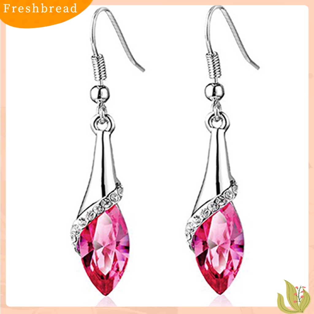 Detail < Freshbread > Wanita Eye-catching Berlian Imitasi Mengkilap Panjang Drop Menjuntai Kait Anting Perhiasan Yang Chic