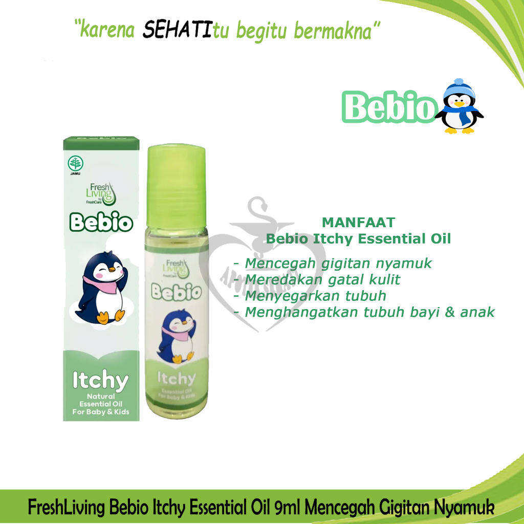 Apotek SEHATI adalah apotek resmi dengan ijin terdaftar, percayakan kebutuhan obat Anda kepada kami, semua barang diperoleh dari PBF/Distributor resmi. Sepenuh Hati dan Profesional melayani, DIJAMIN ORI + AMAN + AMANAH Baby Oil Freshliving BEBIO Essential Oil 9ml (Cough and Flu, Tummy, Itchy) For Baby & Kids Minyak Aromatherapy Untuk Bayi dan Anak Baby Essential Oil Bebio Essential Oil merupakan produk dari FreshLiving by Freshcare, yang berguna sebagai minyak aromaterapi (essential oil) dari ekstrak alami (natural ingredients) untuk membantu melegakan pernapasan dan membantu menghangatkan badan, menyegarkan badan dan membantu meredakan gatal, untuk membantu meredakan gejala masuk angin, seperti perut kembung, sakit perut, dan memberikan rasa hangat pada tubuh bayi. Varian C&F (Cough & Flu) Sebagai minyak aromaterapi dari ekstrak alami untuk membantu melegakan pernapasan dan membantu menghangatkan badan. Komposisi: Oleurn menthae piperita (Peppernint), Oleum eucalypti (Eucalyptus), Tocopherol(vit E), Oleum olivae, Oleum cocos, Oleum vilis viniferae BPOM RI: POM TR 226078921 Kegunaan: -Meredakan batuk dan pilek -Meredakan gejala masuk angin seperti flu dan demam -Melegakan pernafasan bayi dan anak -Menghangatkan tubuh bayi dan anak -Merilekskan tubuh bayi dan anak -Dapat membantu pemijatan -Dapat digunakan dari usia 0 tahun Cara Penggunaan: -Oles di dada, sepanjang punggung & tulang belakang, telapak kaki, dan pijat lembut -Saat sehat gunakan pagi, siang, malam, atau tiap sehabis mandi -Saat sakit gunakan 3 jam sekali atau sesuai kebutuhan Varian Itchy (Gatal) Sebagai minyak aromaterapi dari ekstrak alami untuk membantu menyegarkan badan dan membantu meredakan gatal. Komposisi: Oleurn menthae piperita (Peppernint), Oleum lavandulae (Lavender), Tocopherol(vit E), Oleum olivae, Oleum cocos, Oleum vilis viniferae BPOM RI: POM TR 226082331 Kegunaan: -Meredakan gatal pada bayidan anak -Mencegah gigitan nyamuk -Menghangatkan tubuh bayi dan anak -Merilekskan tubuh bayi dan anak -Dapat membantu pemijatan -Dapat digunakan dari usia 0 tahun Cara Penggunaan: -Oleskan pada bagian yang gatal -Oles di dada sepanjang punggung & tulang belakang, telapak kaki, dan pijat lembut -Saat sehat gunakan pagi, slang, malam, atau tiap sehabis mandi -Saat sakit gunakan 3 jam sekali atau sesuai kebutuhan Varian Tummy (Perut) Sebagai minyak aromaterapi dari ekstrak alami untuk membantu meredakan gejala masuk angin, seperti perut kembung, sakit perut, dan memberikan rasa hangat pada tubuh bayi. Komposisi: Oleum eucalypti (Eucalyptus), Oleum lavandulae (Lavender), Oleum anisisiellati (Star Anise), Tocopherol(vit E), Oleum olivae, Oleum cocos, Oleum vilis viniferae BPOM RI: POM TR 226086241 Kegunaan: -Meredakan sakit perut dan perut kembung -Membantu melancarkan pencernaan -Menghangatkan tubuh bayi dan anak -Merilekskan tubuh bayi dan anak -Dapat membantu pemijatan