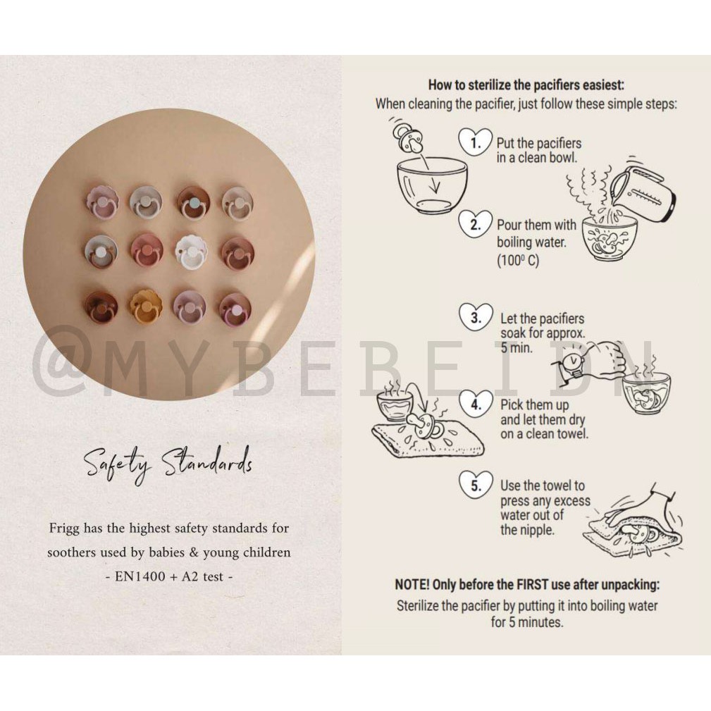 Care: Always sterilize each pacifier before use by washing with hot water and leaving to air dry. For hygienic reasons, we recommend discarding pacifier after 3-4 months.
