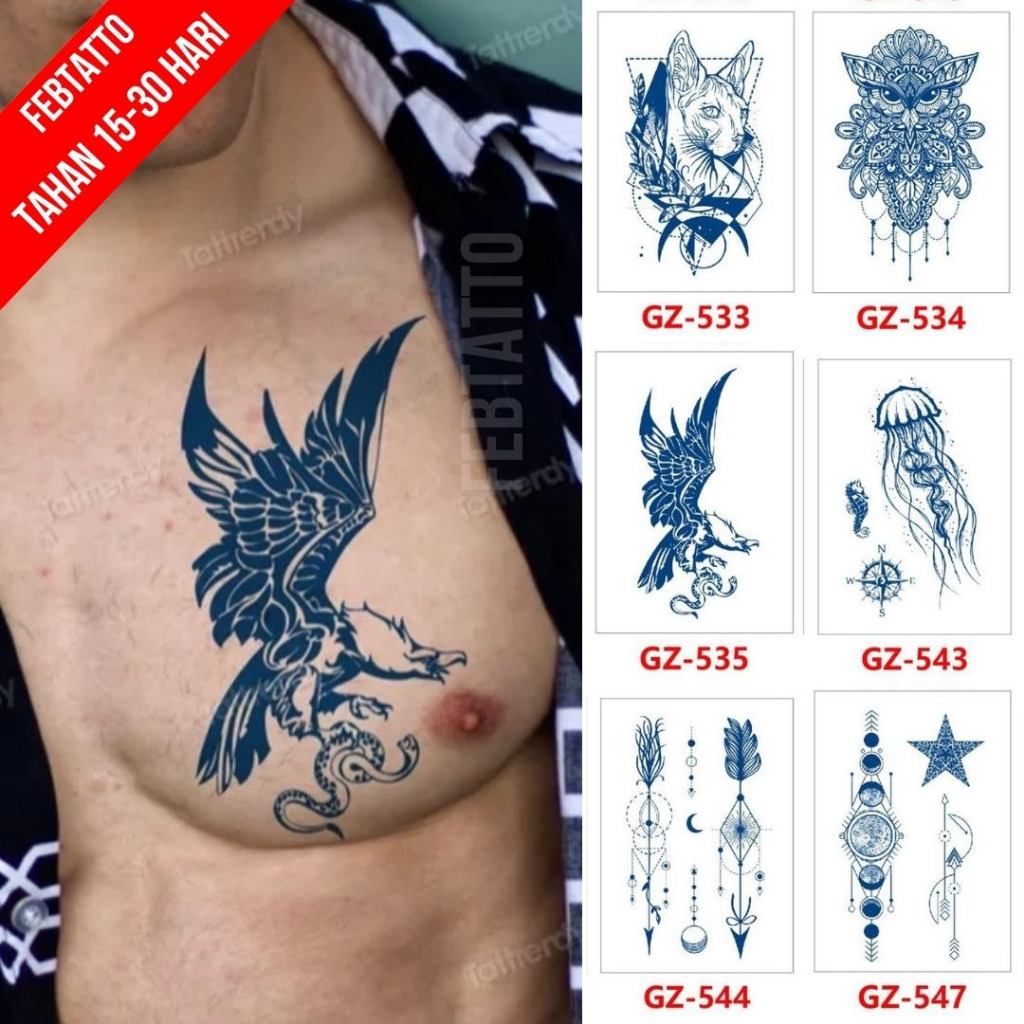 Aksesoris Fashion > Aksesoris Tambahan > Tato Temporer > FRUIT INK Tato Semi Pemanent Tahan 1 Bulan Ukuran 11cmx18cm Tato Lengan Tato Dada Tato tangan Tato Kaki Motif Aesthetic Tatto Temporary Stiker Tato Halal Grosir Tato air motif kucing, burung hantu, burung garuda , ubur ubur, panah, planet GZ 535
