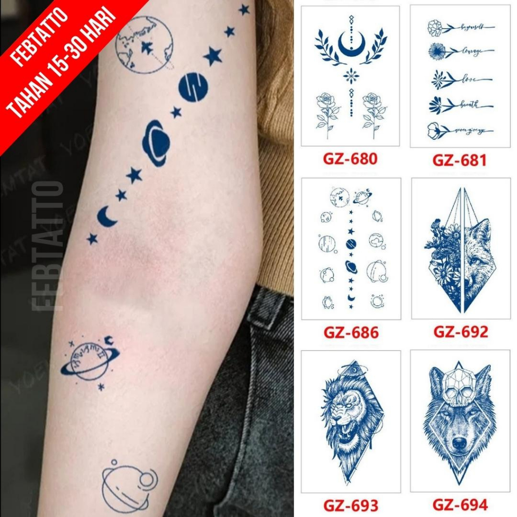 ✨Stiker Tatto Temporary adalah solusi terbaik untuk Anda penggemar seni tato untuk dapat tetap tampil fashion, Dapat ditempel pada bagian kaki, leher, lengan, pinggang atau pada bagian anggota tubuh lainnya yang Anda sukai.