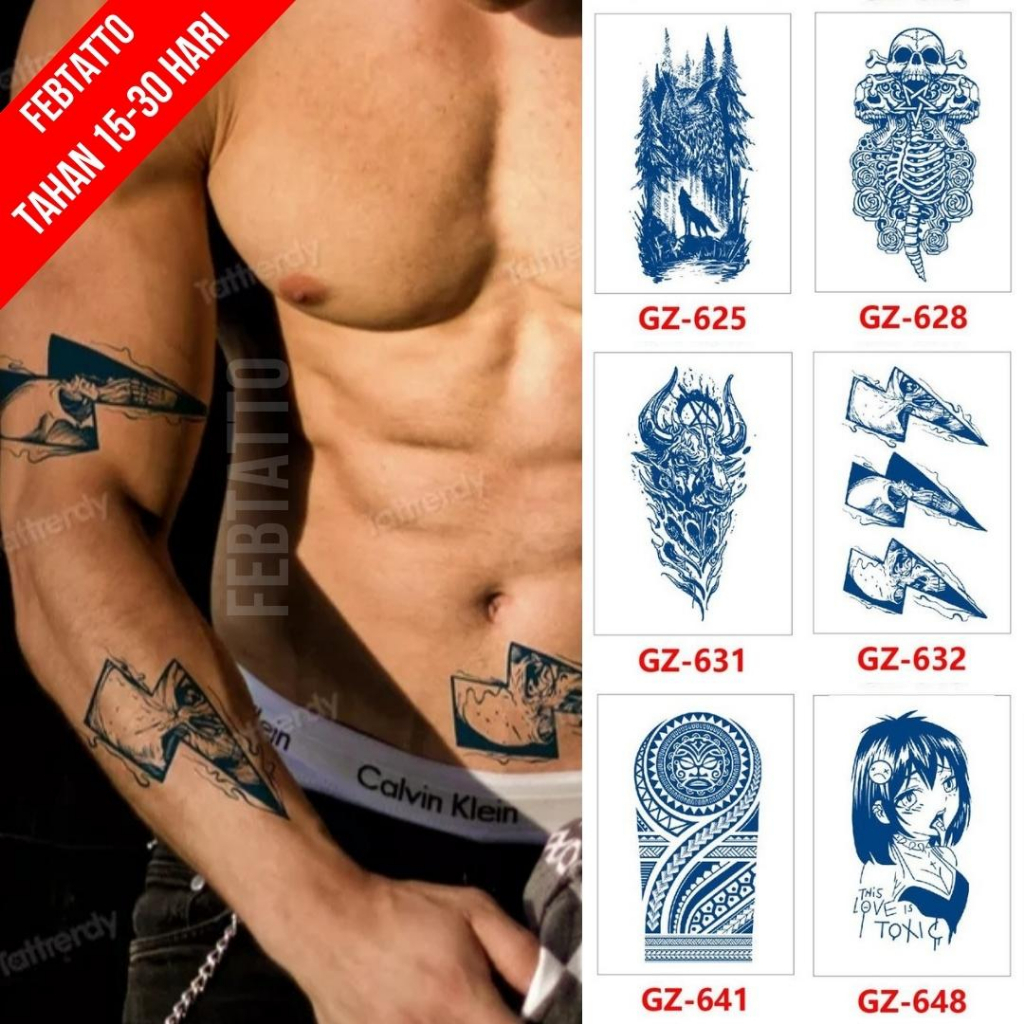Detail FRUIT INK Tato Semi Pemanent Tahan 1 Bulan Ukuran 11cmx18cm Tato Lengan Tato Dada Tato tangan Tato Kaki Tato Punggung Tato Jari Motif Aesthetic Tatto Temporary Stiker Tato Halal Grosir Tato air motif tengkorak, serigala, petir, tribal, anime GZ 632