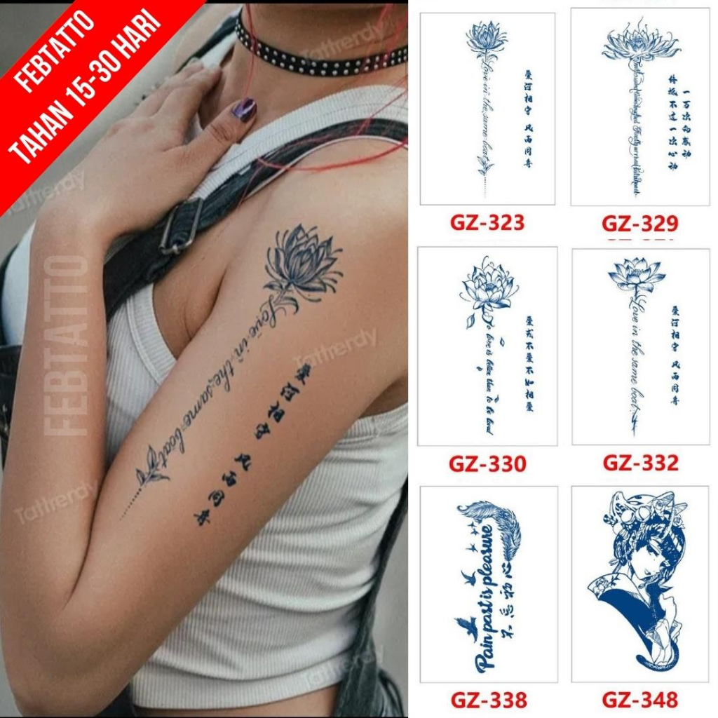 Detail FRUIT INK Tato Semi Pemanent Tahan 1 Bulan Ukuran 11cmx18cmTato Lengan Tato Dada Tato tangan Tato Kaki Tato Punggung Tato Jari Motif Aesthetic Tatto Temporary Stiker Tato Halal Grosir Tato air motif perempuan, bunga, tulisan GZ 323