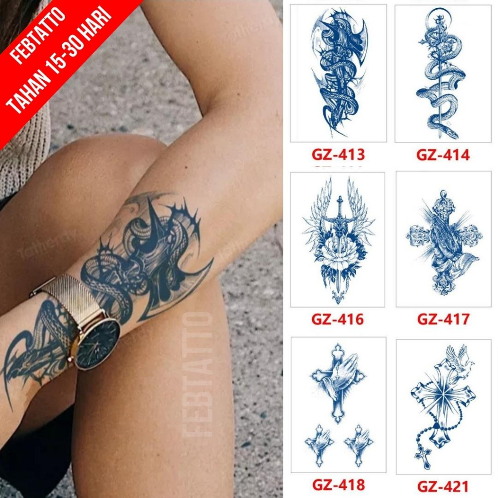 Detail FRUIT INK Tato Semi Pemanent Tahan 1 Bulan Ukuran 11cmx18cmTato Lengan Tato Dada Tato tangan Tato Kaki Tato Punggung Tato Jari Motif Aesthetic Tatto Temporary Stiker Tato Halal Grosir Tato air motif salib, sayap, bunga, ular GZ 413