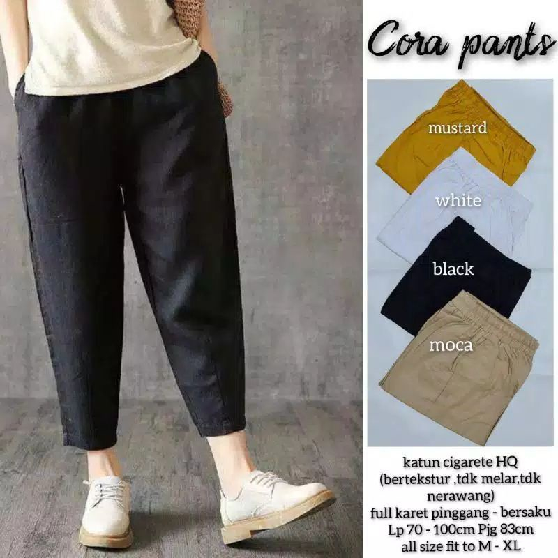 Detail FS - Cora Pants Linen / Celana Plain Boyfriend Slim Wanita Katun Linen Original
