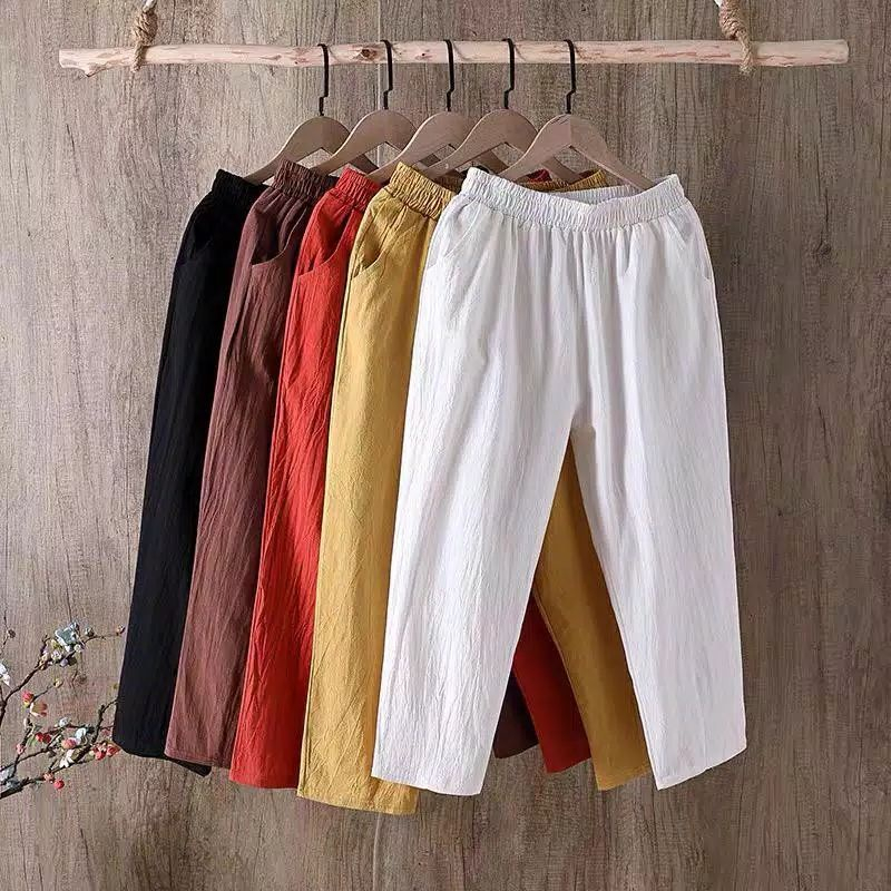 FS - Cora Pants Linen / Celana Plain Boyfriend Slim Wanita Katun Linen Original