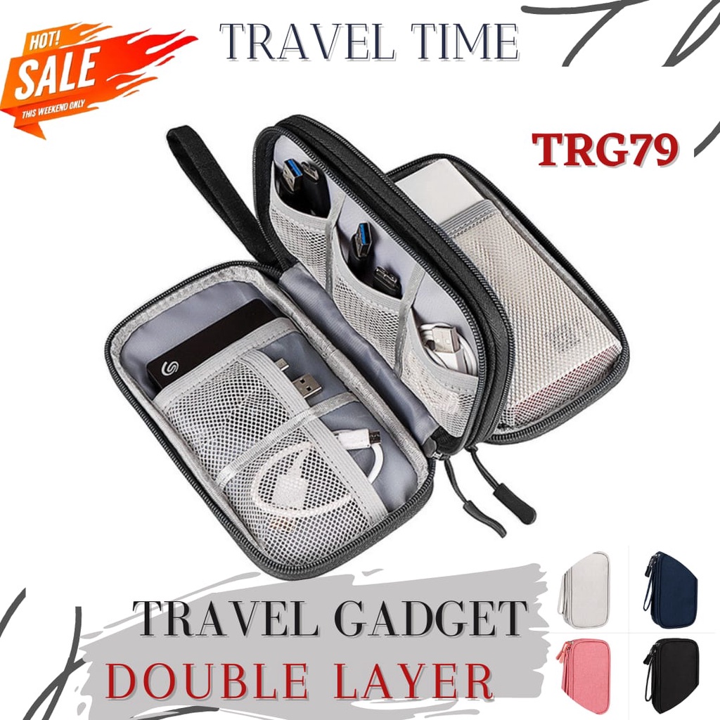 TRG79 - TAS GADGET DOUBLE LAYER ORGANIZER POUCH CANVAS - Efisien Bawaan Gadget pada Saat Traveling - Bahan Waterproof - Melindungi Gadget / Powerbank Anda Karena Memiliki Bantalan Busa pada Atas Bawah - Terdapat 2 Bagian Space/Layers - Terdapat Banyak Sekat (Handphone/Powerbank/Handsfree/Cable, Flashdisk, Ballpoint, Pasport, Etc...) - Resleting Besi - Tali Gantungan Tangan