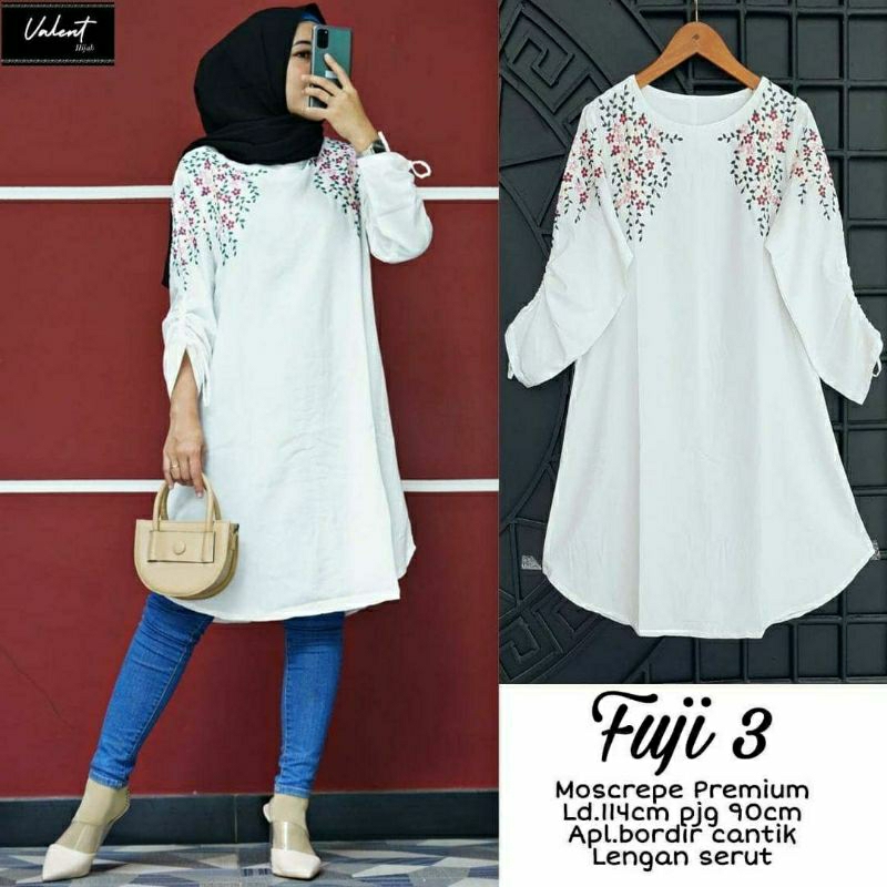 Fashion Muslim > Atasan Muslim Wanita > Tunik > Fuji Tunik, TUNIK WANITA MUSLIM CANTIK FIT XXL LD 114 BAHAN MOSCREPE PREMIUM MIX BORDIR TERMURAH OOTD TERLARIS